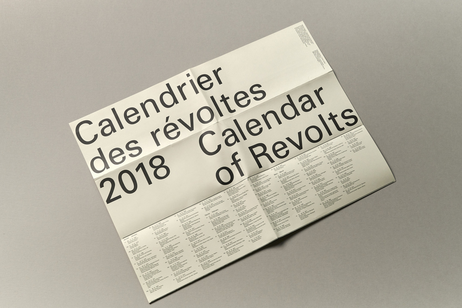 Poster for Matthieu Saladin, The Calendar of Revolts 2018.